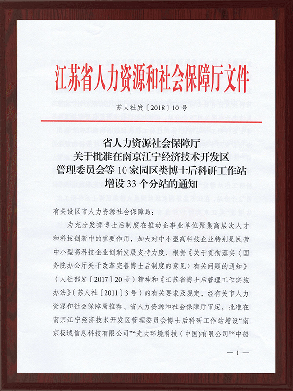 Postdoktoranden-Workstation-Unterstationsgenehmigung Su Ren She Fa 2018-10