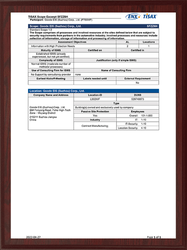 TISAX-Zertifikat SFZZ6H